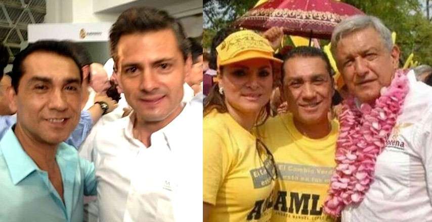 Las siguientes fotos muestran a Enrique Peña Nieto y a Andrés Manuel López Obrador, opositores el uno del otro junto a José Luis Abarca, quien es señalado responsable por la desaparición de los estudiantes normalistas de Ayotzinapa en septiembre de 2014. Los simpatizantes de cada personaje utilizaban la fotografía del contrario para sostener que estaba coludido en dicho crimen de lesa humanidad.